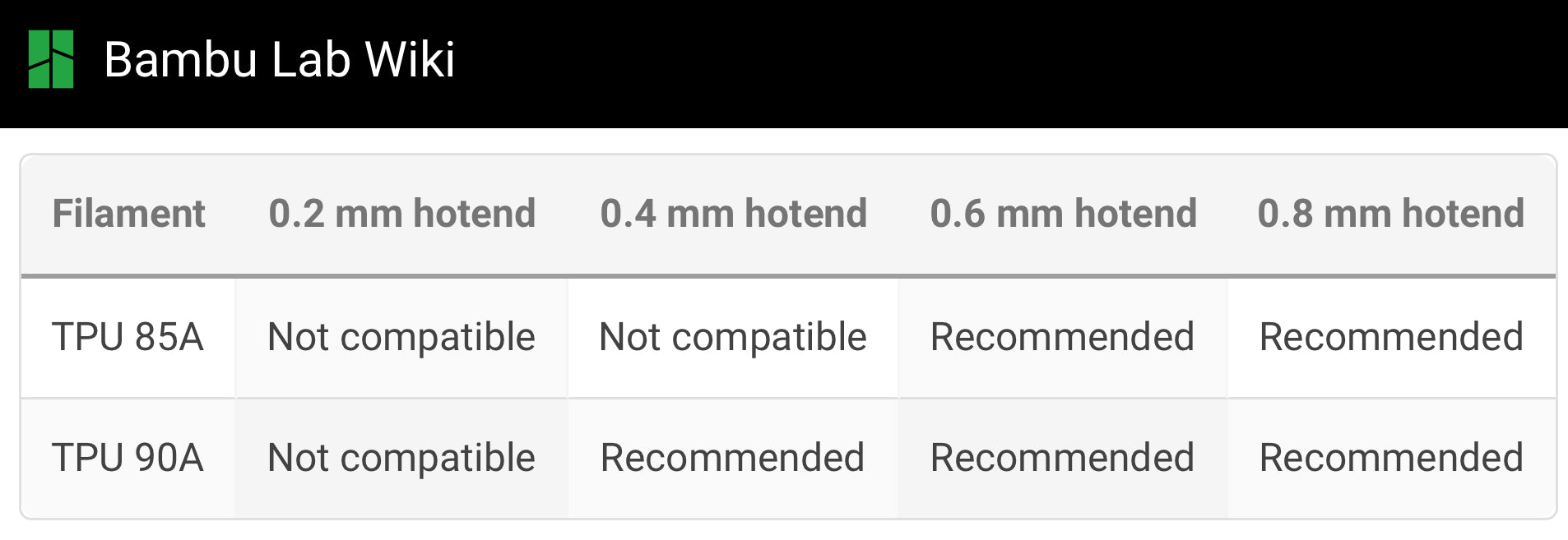 • TPU 85A and 90A require highly precise printing conditions. Before printing, please carefully read the Printing Guide for TPU 85A & TPU 90A on the wiki to ensure the best results.